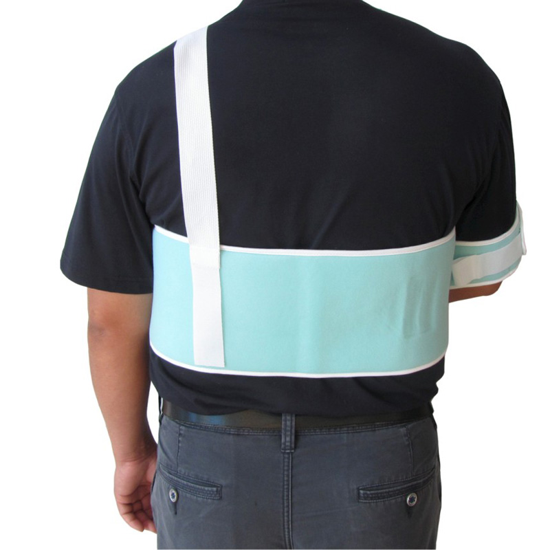 Univeral Shoulder Immobilizer.Wraparound chest band with shoulder strap provides maximum support and protection.The elastic wrists and humeral cuffs are sewn to the chest band and are adjustable by hook and loop closures.